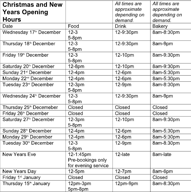 Wednesday – Friday: 12pm – 3pm, 5pm – 8pm