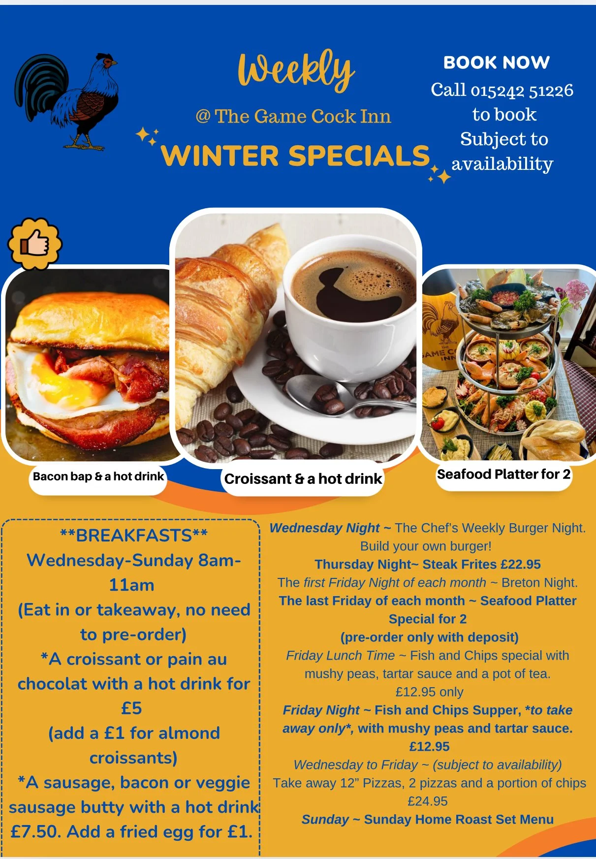 Every Friday lunch time we offer lightly battered fish & homemade chips with mushy peas and homemade tartar sauce. Served with a pot of tea for only £12.50 per person!